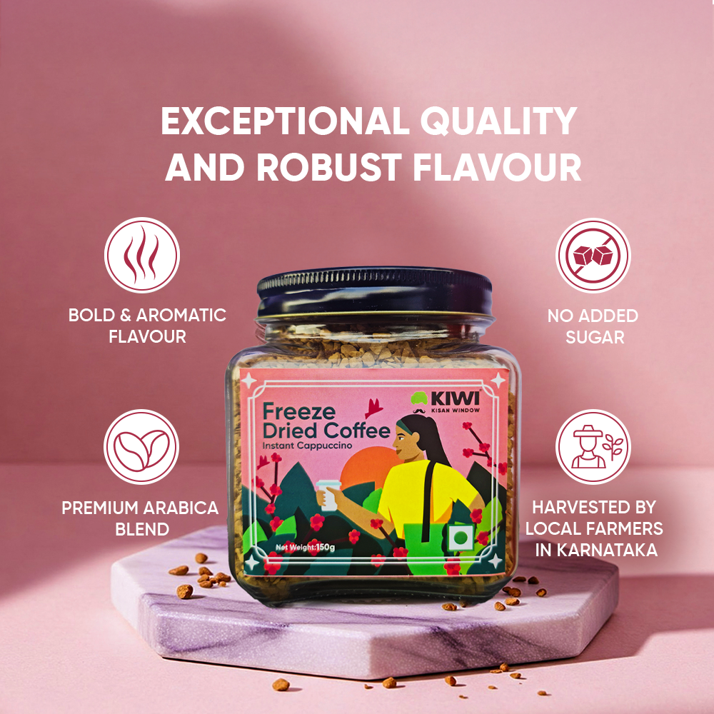 - Freeze Dried Strong Coffee (150 gm): Carefully freeze-dried to preserve its bold flavor and rich aroma, this coffee offers an instant pick-me-up with each cup. ✅ Rich in antioxidants and caffeine for a natural energy boost.