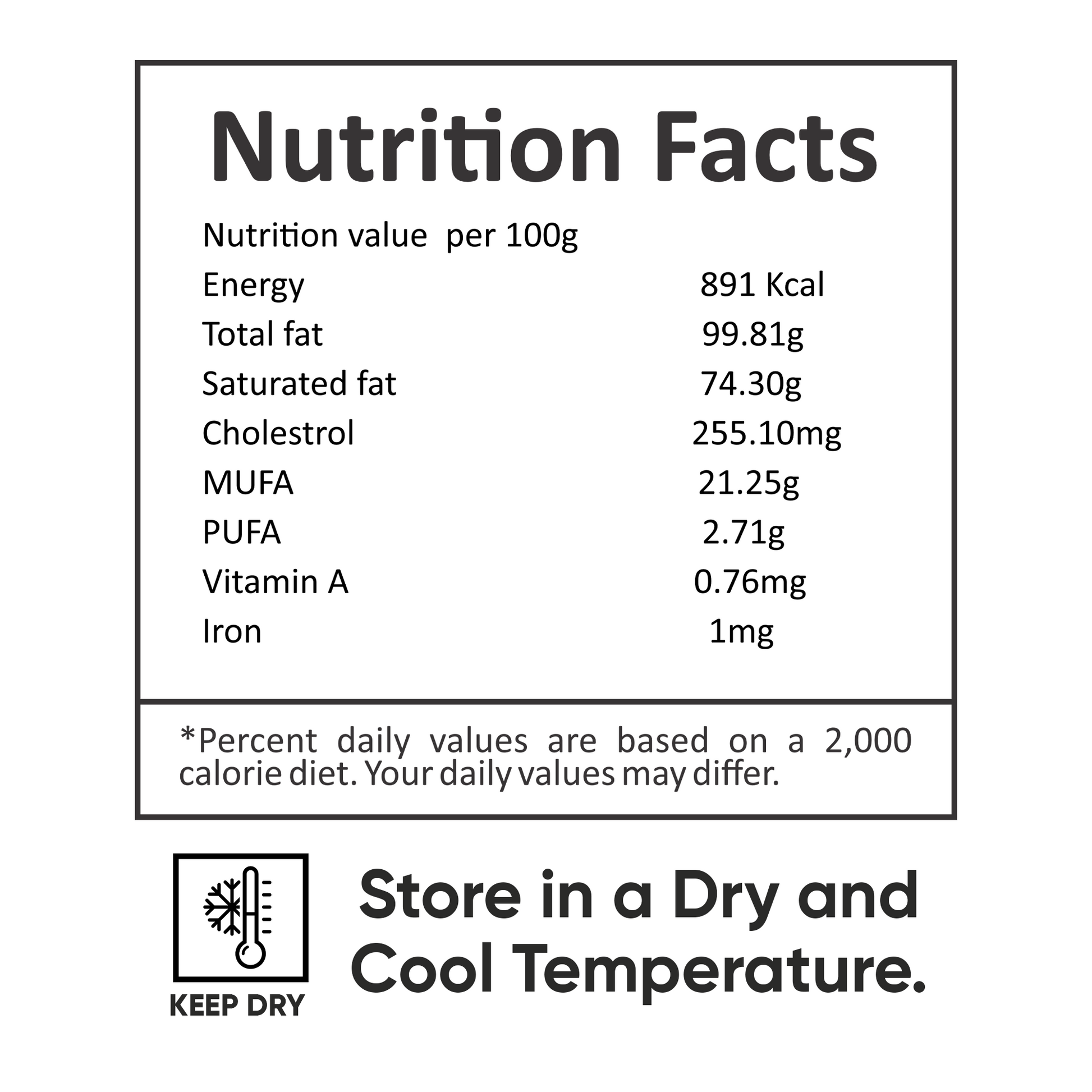 A2 Ghee is rich in butyric acid, CLA (conjugated linoleic acid), and vitamins A, D, E, K, which support digestion, brain function, joint health, and immunity.