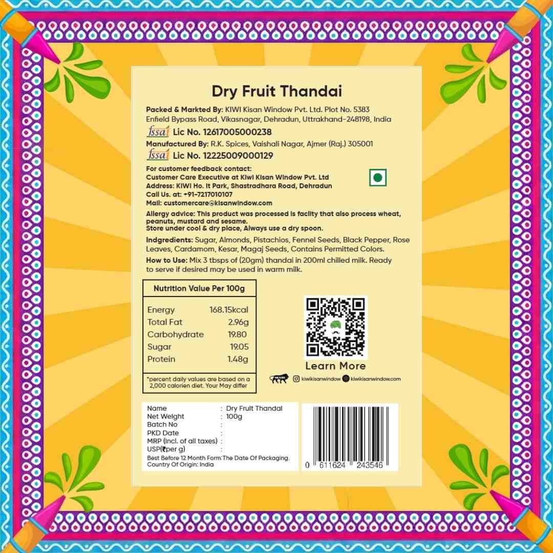 Perfect for Holi, festive gatherings, weddings, and family celebrations, or as a refreshing drink KIWI Dry Fruit Thandai Mix delivers a smooth, creamy texture and a balanced blend of sweetness and spice. Made with high-quality natural ingredients and traditional recipe, this Thandai mix is easy to prepare, just mix with chilled milk for an instant festive treat.