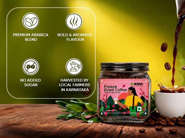 Prepare: Add 1–2 teaspoons of Freeze Dried Coffee to a cup of hot water or milk. Stir: Mix until fully dissolved. Sweeten: Optionally, add sugar, jaggery, or milk as per taste. Serve: Enjoy immediately as hot coffee or pour over ice for a refreshing iced coffee.