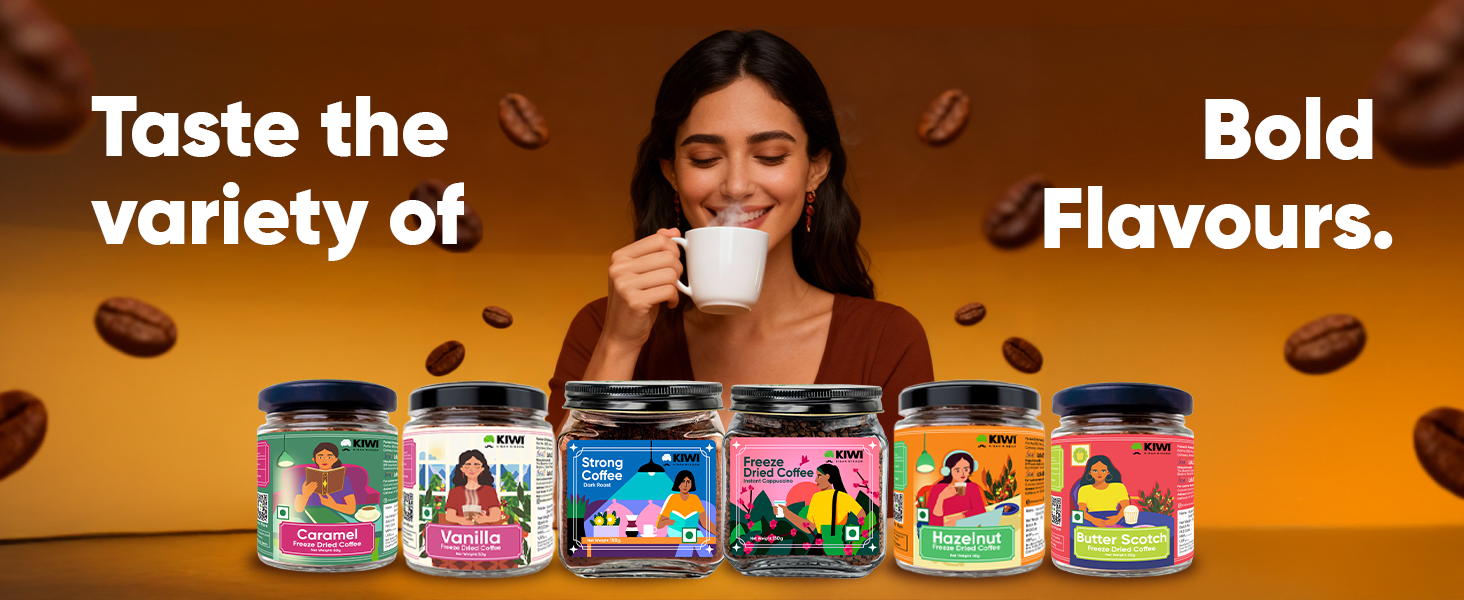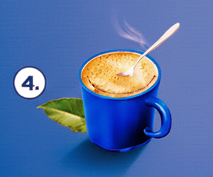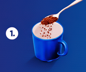 Prepare: Add 1–2 teaspoons of Freeze Dried Coffee to a cup of hot water or milk.