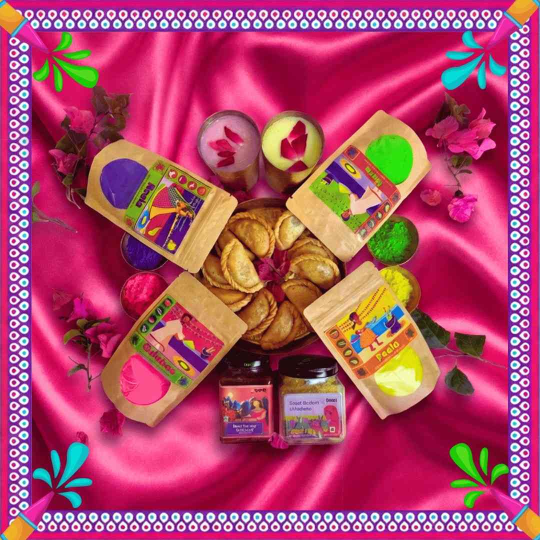 Every product in this hamper is thoughtfully curated from herbal gulaal to refreshing festive sharbat essentials, so you can celebrate Holi with purity, tradition, and authentic Indian flavours without the stress.