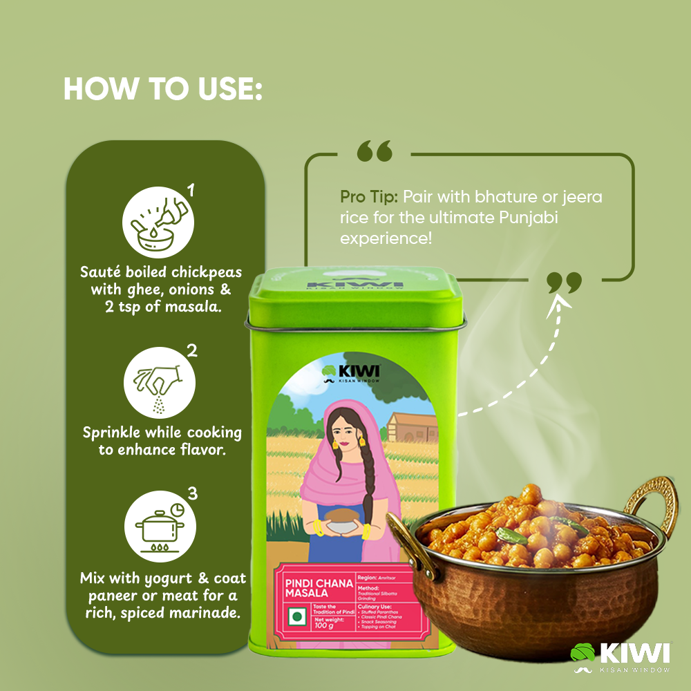 Made with dry mango, cinnamon, and black salt, this masala adds rich, tangy heat to your chickpeas β€” inspired by Rawalpindi flavors.
