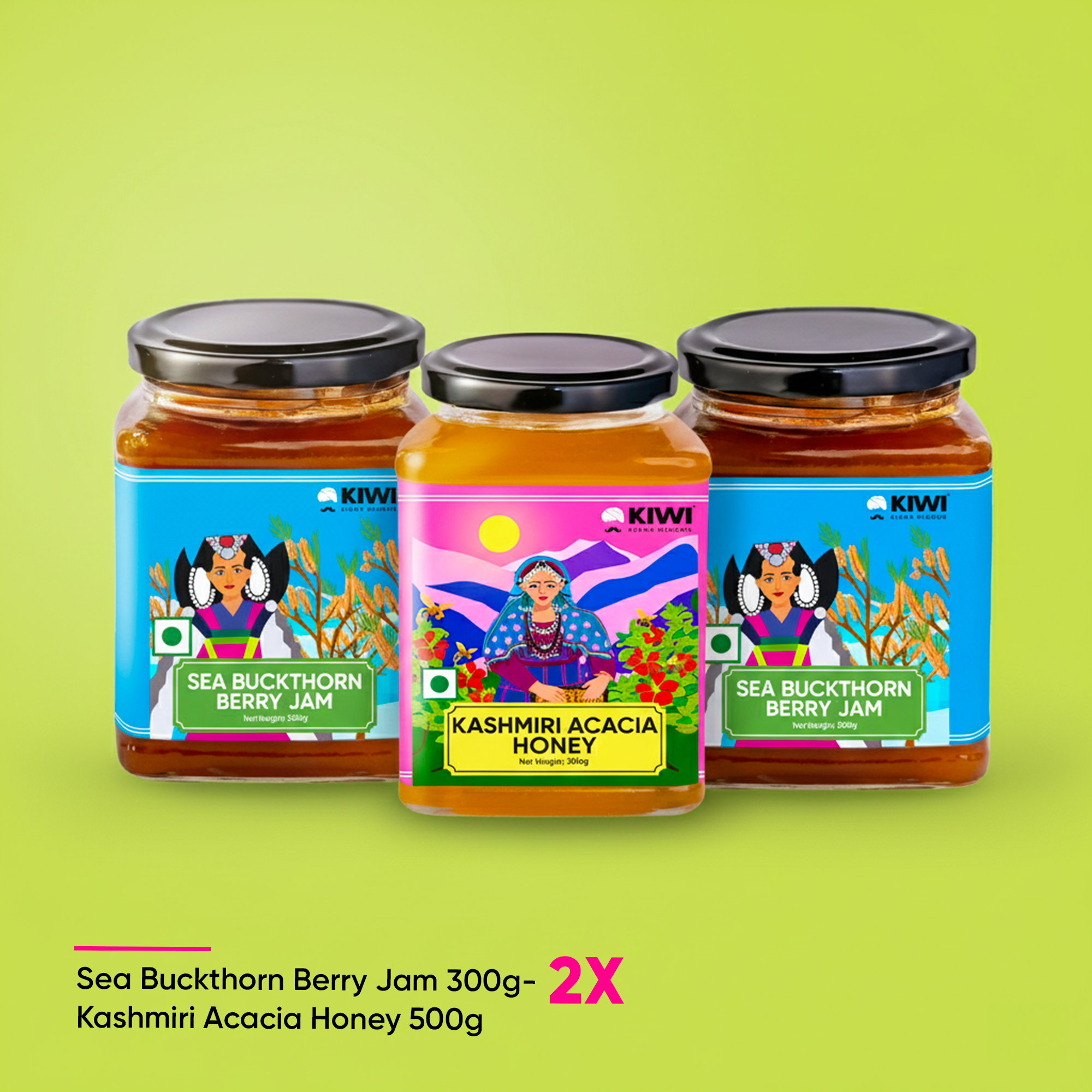 Himalayan Wellness Duo ( 1 Kashmiri Acacia Honey + 2 Sea Buckthorn Jam )