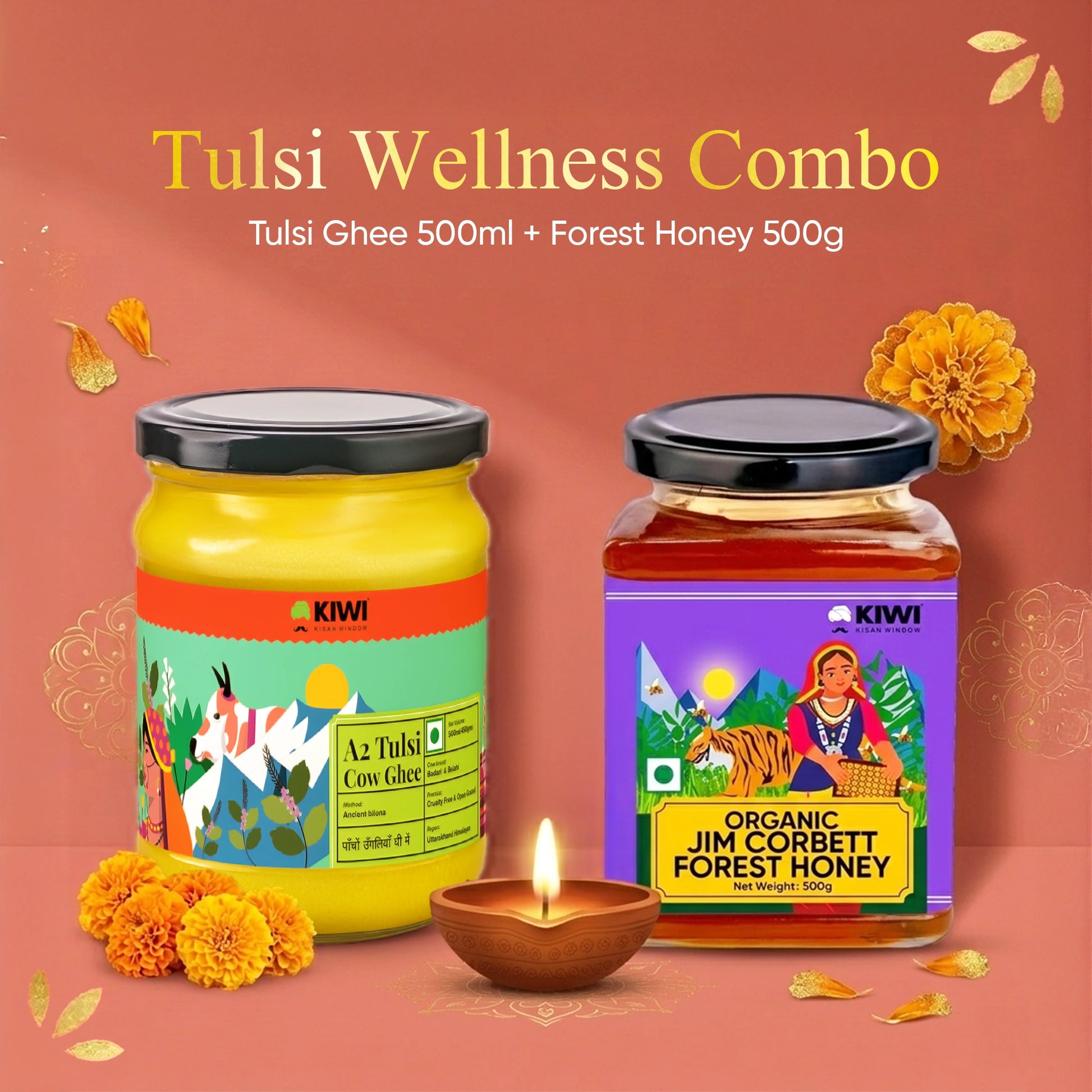 Embrace the spirit of Navratri with ingredients that reflect purity, wellness, and tradition. The KIWI Navratri Divine Wellness Pack brings together the sacred goodness of Tulsi Ghee and the natural richness of Jim Corbett Forest Honey, making it a thoughtful combination for fasting days, devotional rituals, and nourishing festive meals.